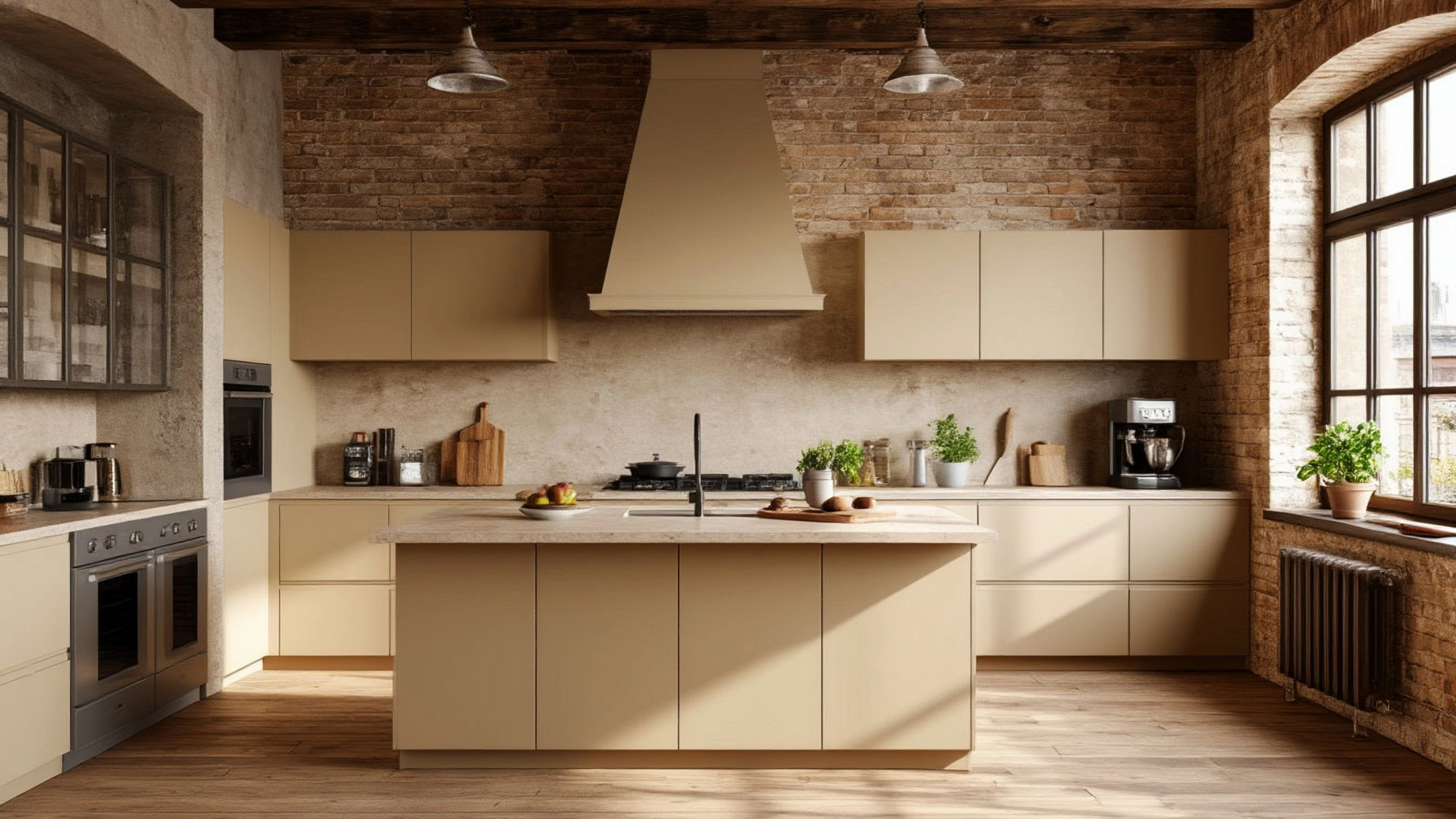 Дизайн кухни подчёркивает минимализм и индустриальный характер стиля лофт. Прямые линии, аккуратные фасады и лаконичные формы создают современный и строгий вид, а бежевый цвет смягчает интерьер, добавляя тепла и визуальной легкости. Металлические элементы и натуральные текстуры придают кухне индивидуальность, делая её выразительной и неповторимой.