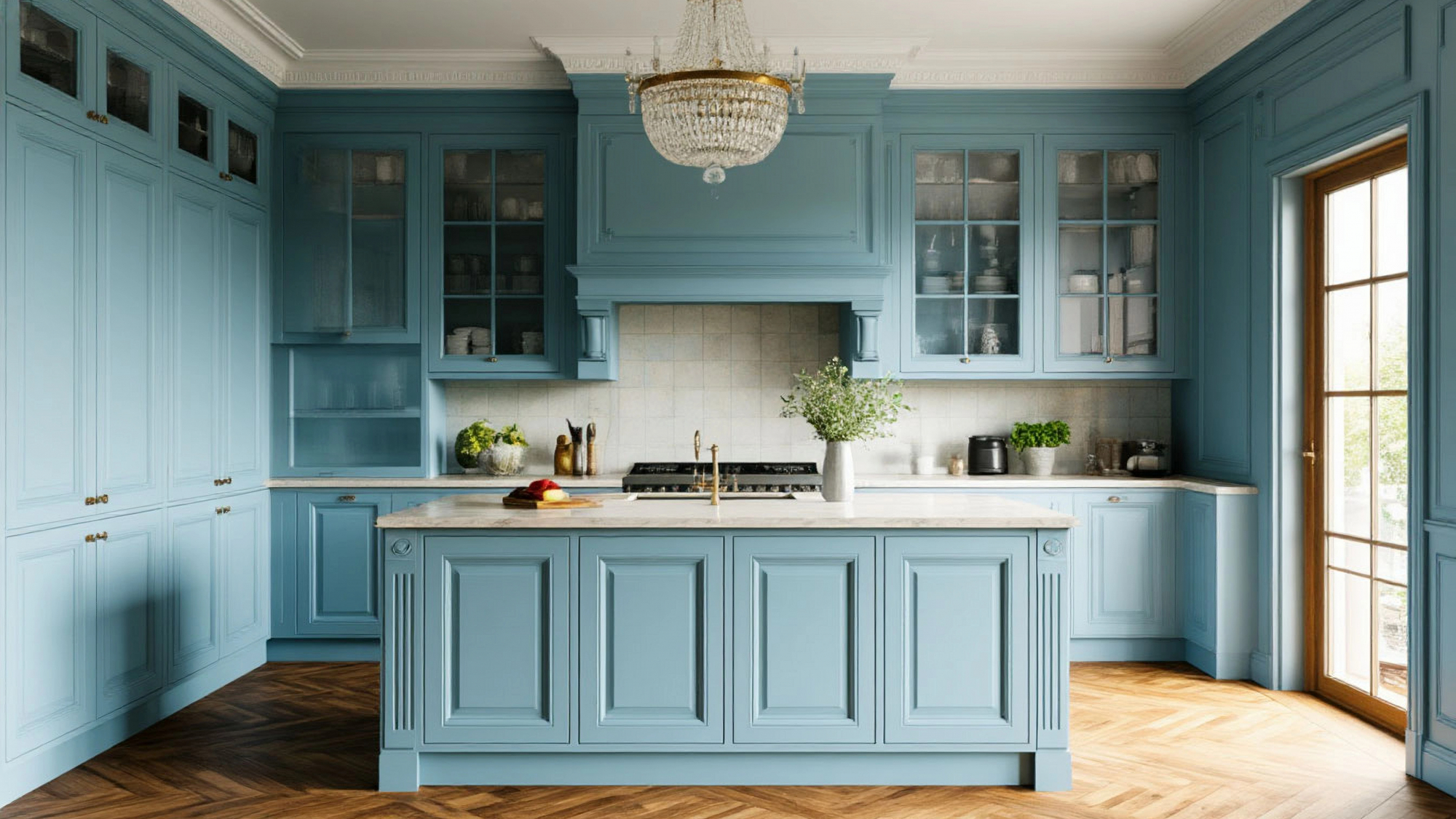 Кухня "Мальта" – это ещё и пространство для самовыражения. Голубой цвет позволяет экспериментировать с декором: он прекрасно смотрится с белой керамической плиткой, мраморными или каменными столешницами, текстилем в натуральных оттенках. Можно добавить золотистые или серебристые акценты, чтобы подчеркнуть торжественность неоклассики, либо оставить интерьер максимально спокойным и естественным, если душа ближе к легкости и минимализму.