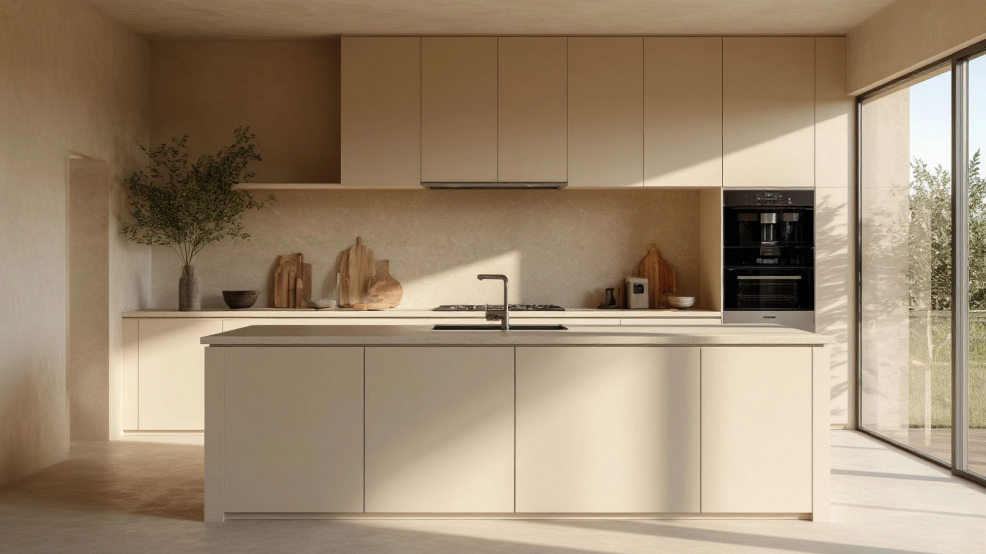 Кухня в бежевом цвете традиционно ассоциируется с теплом и спокойствием, но в минималистичном исполнении этот оттенок раскрывается по-новому. Он не становится фоном без характера, а, наоборот, приобретает глубину. В зависимости от освещения и окружения он может выглядеть более нейтральным или более теплым, более легким или более насыщенным. Это делает пространство живым и адаптивным.