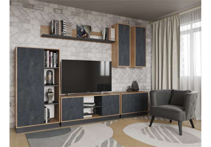 ТВ-тумбы Леви 85 дуб крафт золотой / черный / угольный камень (84,8x42,4x59,4).