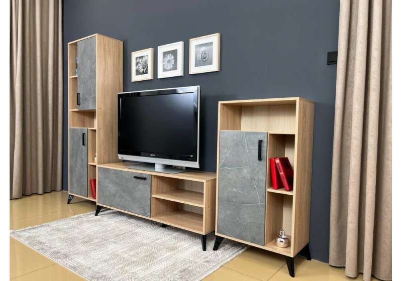 Готовые гостиные Алди дуб сонома / каспий темный ().