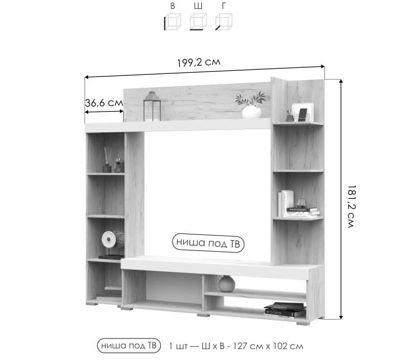 Готовые гостиные Касэль софт вайт / дуб крафт золото (199,2x36,6x181,2).