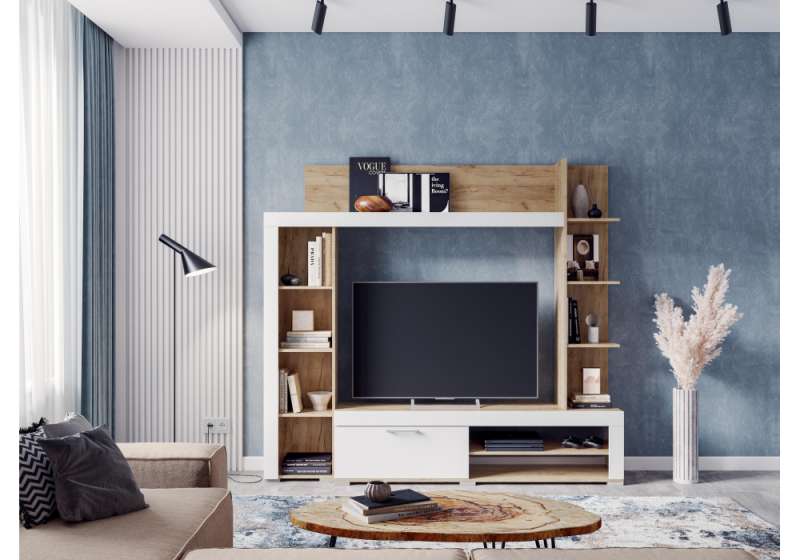 Готовые гостиные Касэль софт вайт / дуб крафт золото (199,2x36,6x181,2)