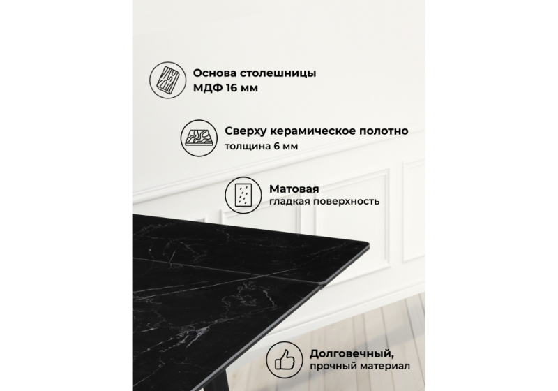 Керамический стол Джек 140(200)х80 черный мрамор shakespeare black / черный (80x75).