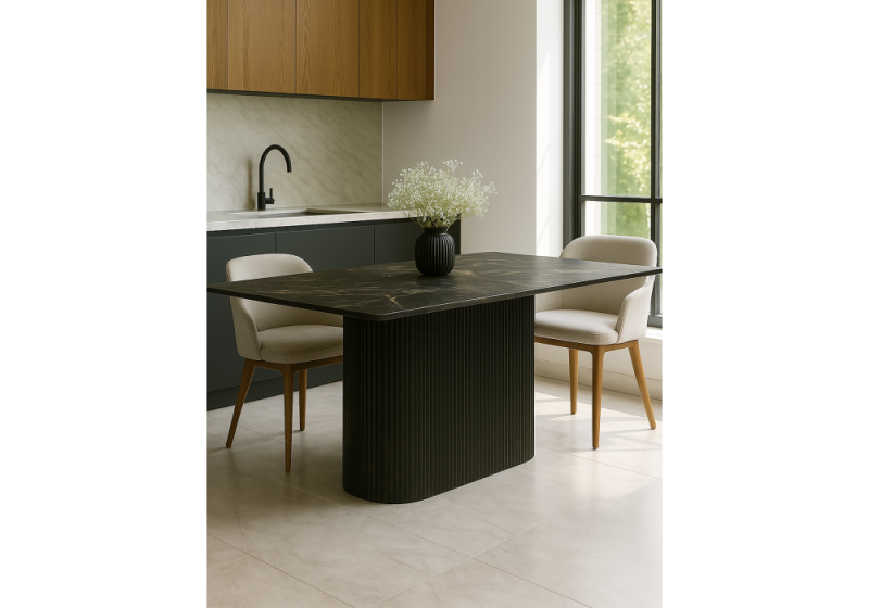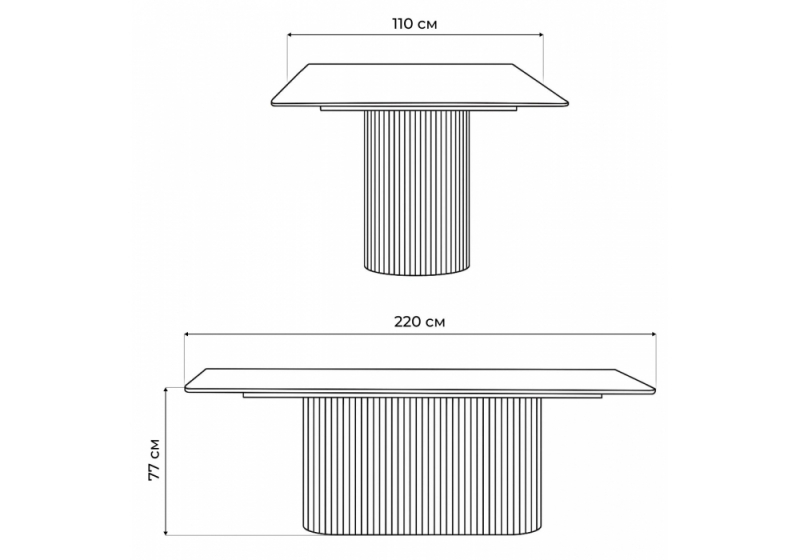 Керамический стол Ривера 220x110 пленка черный кварц / черный (110x77).