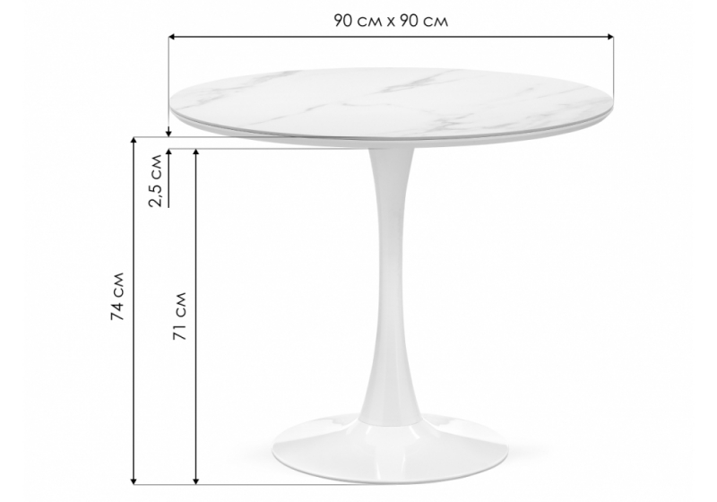 Керамический стол Тулип 90х73 черный мрамор / золото