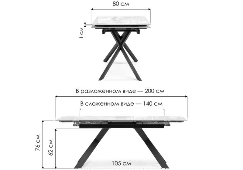 Керамический стол Хилбри 140(200)х80х76 statuario cara / черный (80x76).