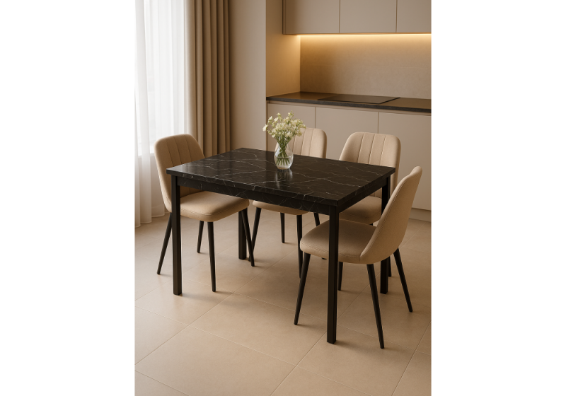 Расстояние между ножками: 104 х 51 см. Толщина столешницы: 3 см.