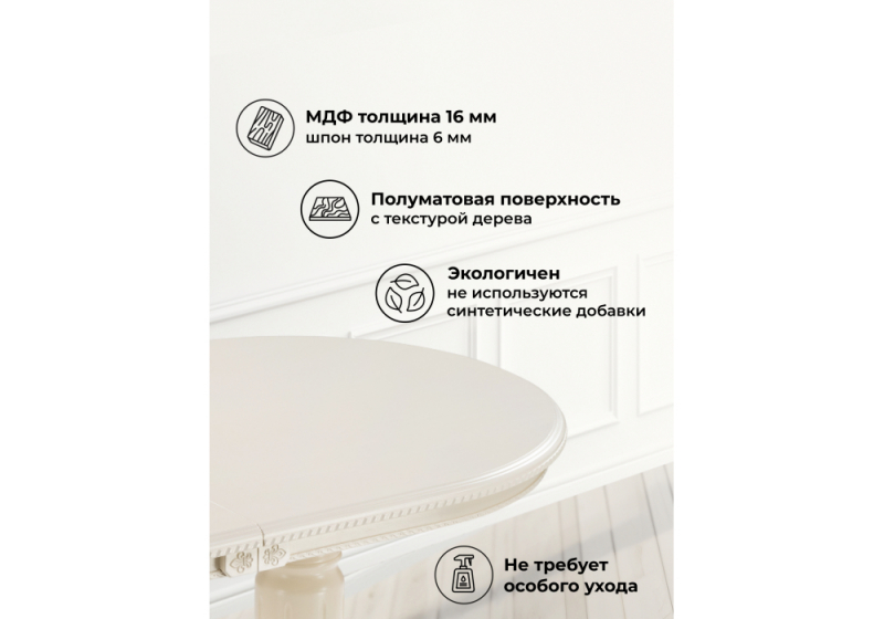 Стол деревянный Эвклаз овальный бежевый (90x77).
