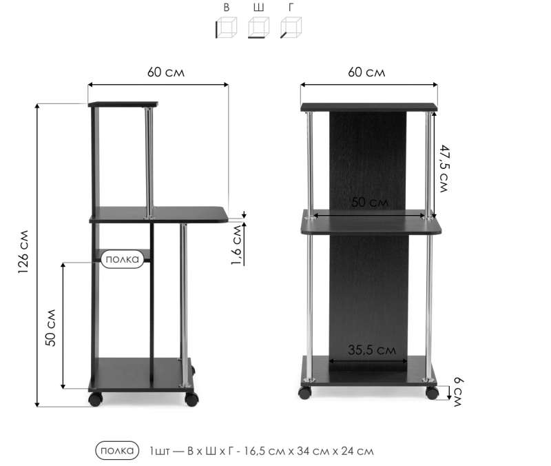 Компьютерный стол КСТ-12 60х60х125,5 венге (60x125,5)