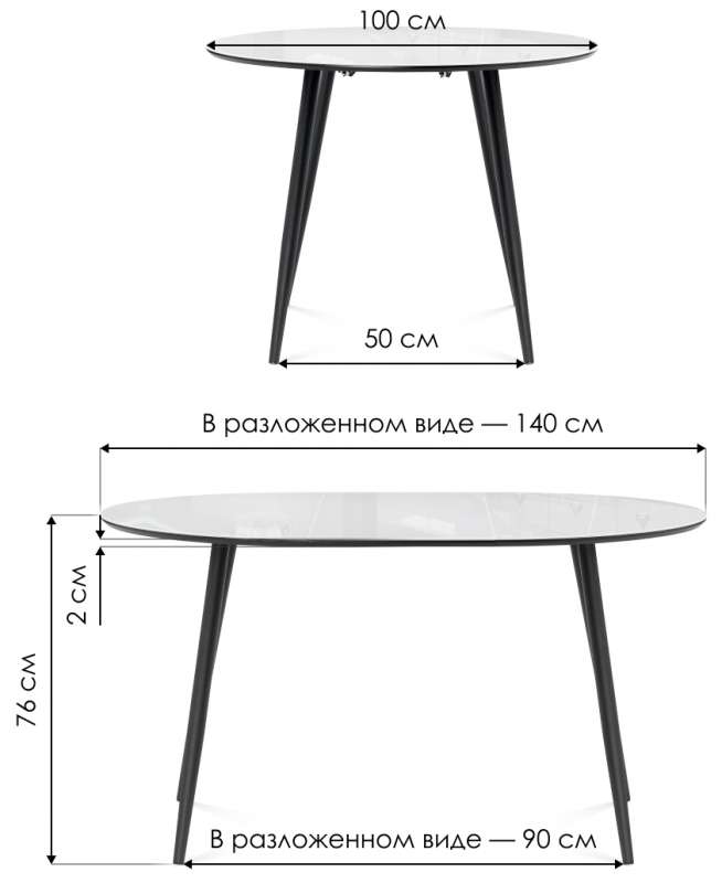 Стол стеклянный Абилин 100(140)х100х76 ультра белое стекло / черный / черный матовый (100x76)