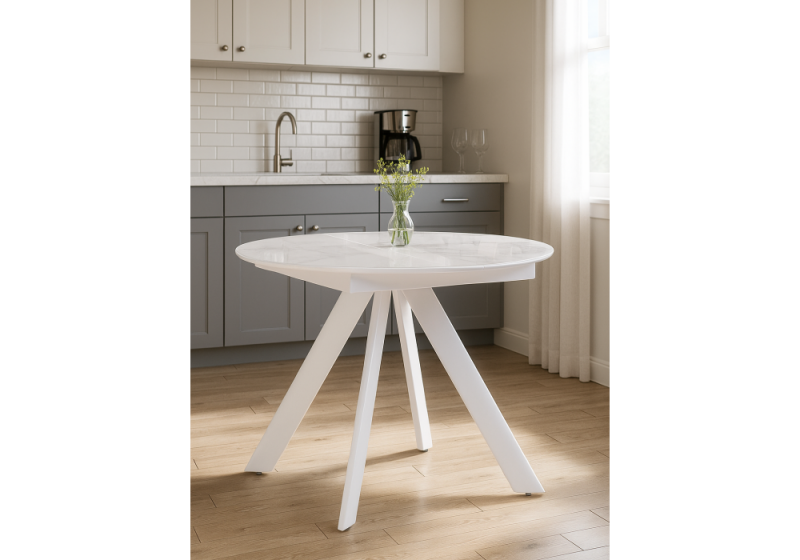 Стол стеклянный Галвестон 100х76 белый мрамор / белый (100x77)