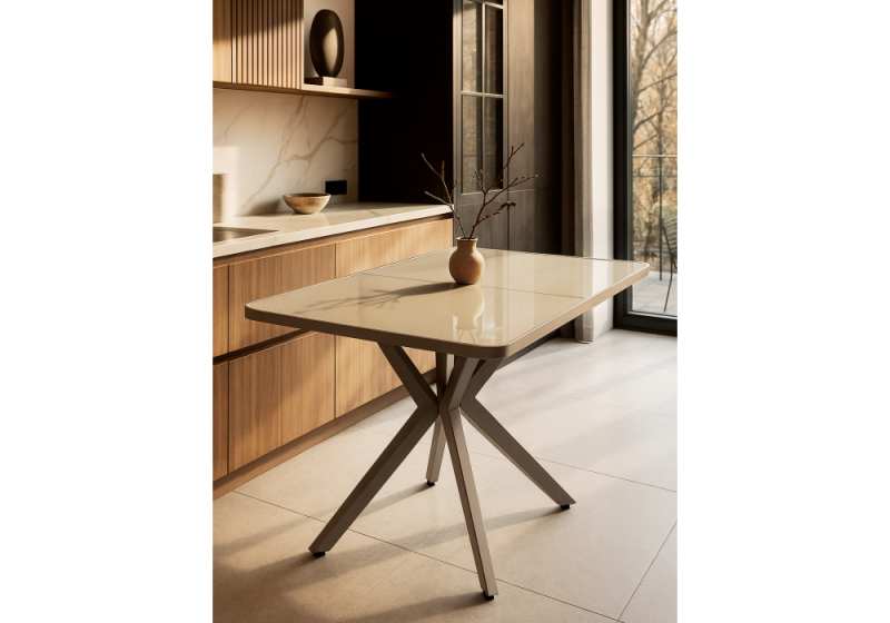 Стол стеклянный Тамаса 120(150)х70х76 латте / капучино.