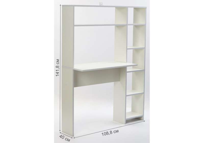 Компьютерный стол Тулон со стеллажом белое тиснение (40x141,8).