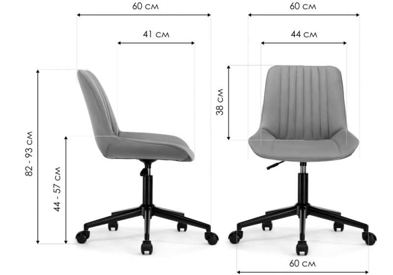 Диаметр крестовины: 60 см. Высота спинки: 38 см.